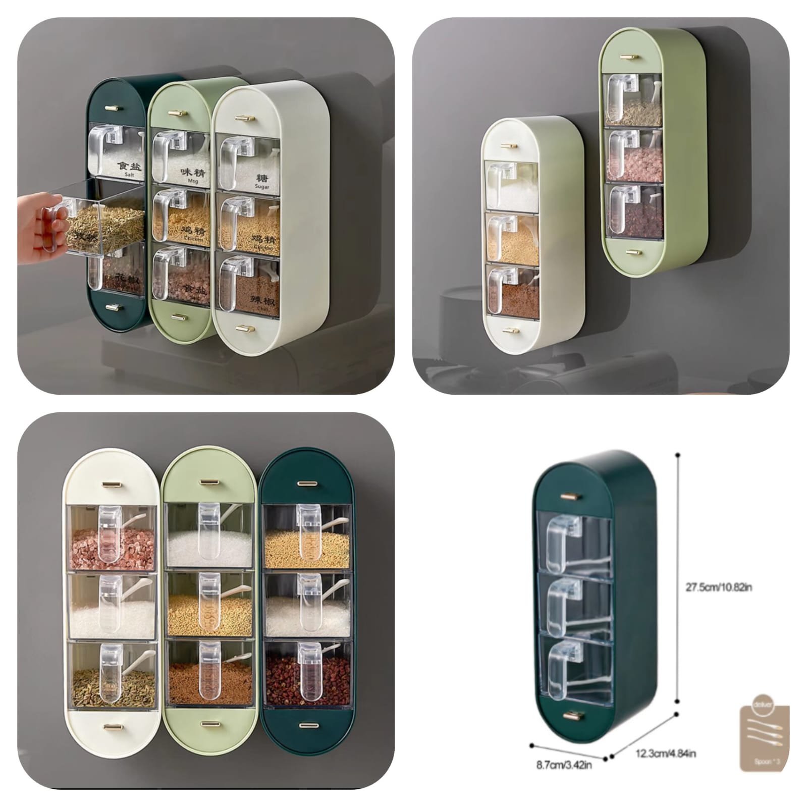 A wall-mounted seasoning spice rack is a kitchen storage solution that helps to keep your spices organized and within easy reach. It typically consists of a series of shelves or hooks that are mounted on the wall, and it can be used to store a variety of different spices, herbs, and other seasonings.